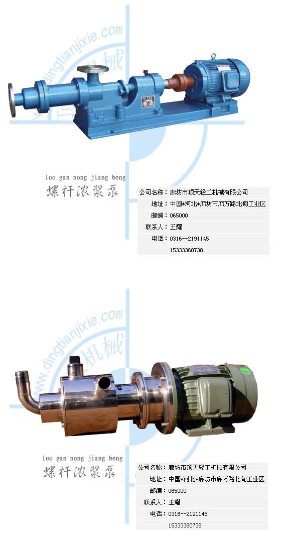 螺杆泵是按迥转啮合容积式原理工作的新型泵种。主要工作部件是偏心螺杆(转子)和固定的衬套(定子),由于该部件的特殊几何开头分别形成单独的密封容腔,介质由轴向均匀推行流动,内部流速带低,容积保持不变压力稳定,因而不会产品涡流和搅动。 单螺杆泵被广泛用于各行业输送各类介质,恒压连续运行,无脉动,介质输送无破损,通过调节转速改变流量从而达到计量的目的。